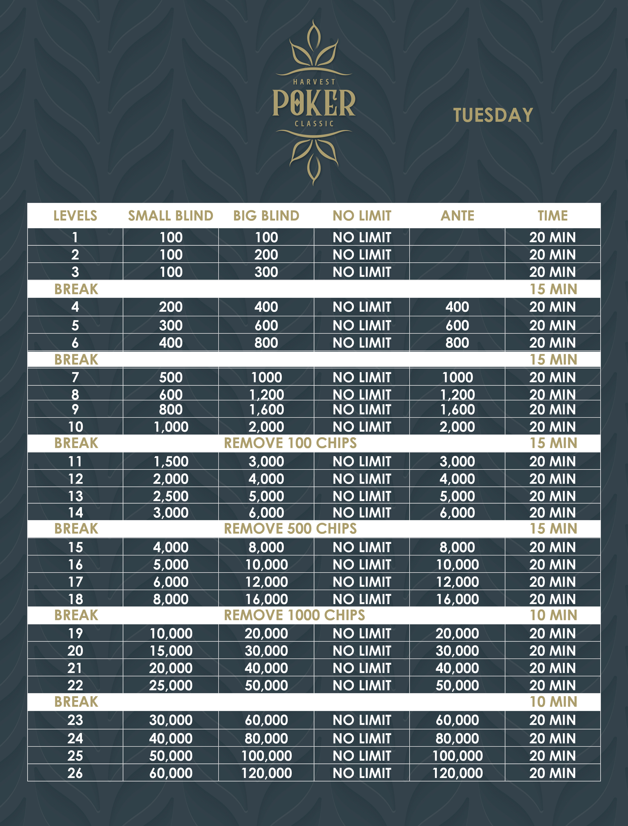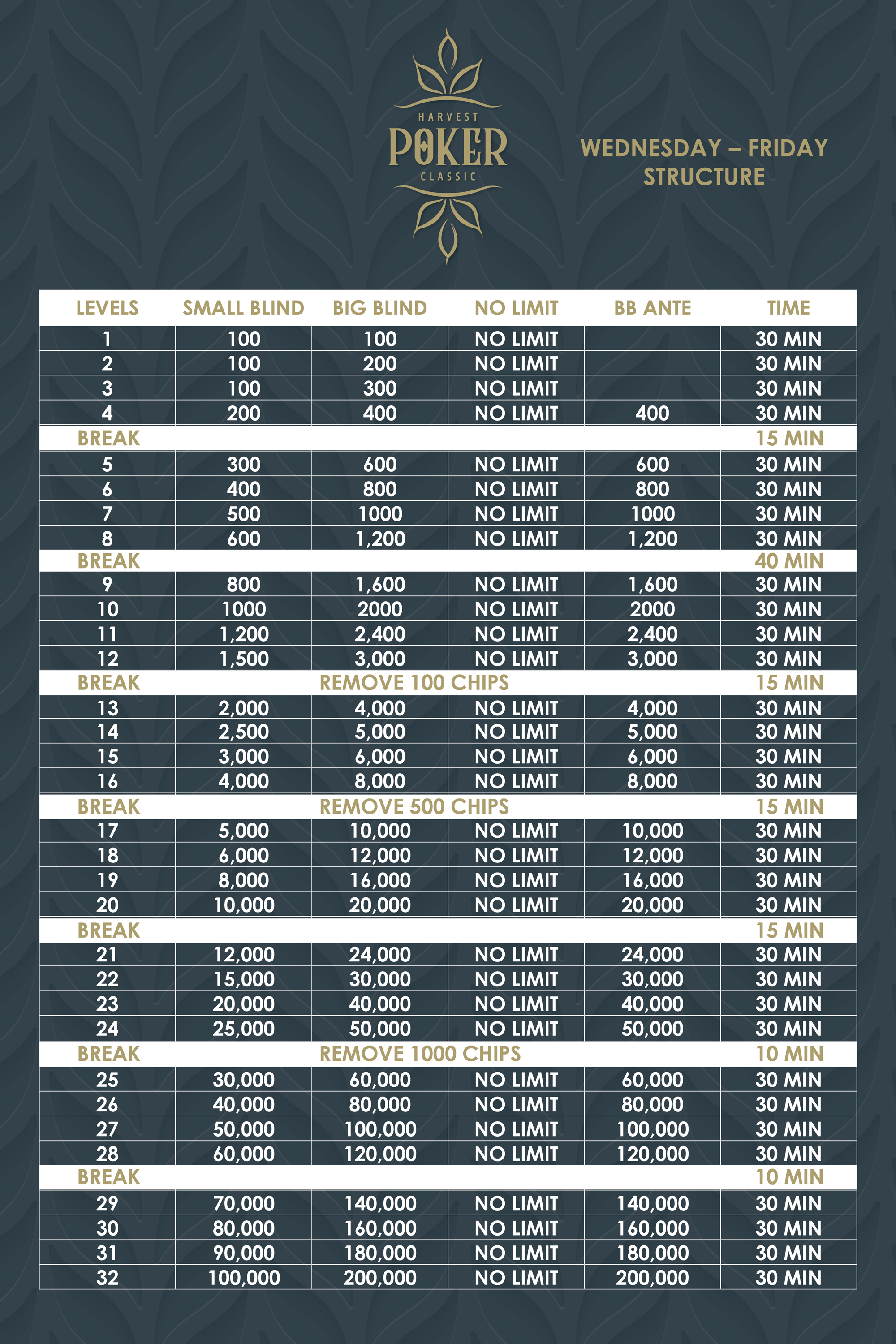- Harvest Poker Classic – November 11 – 15 2025