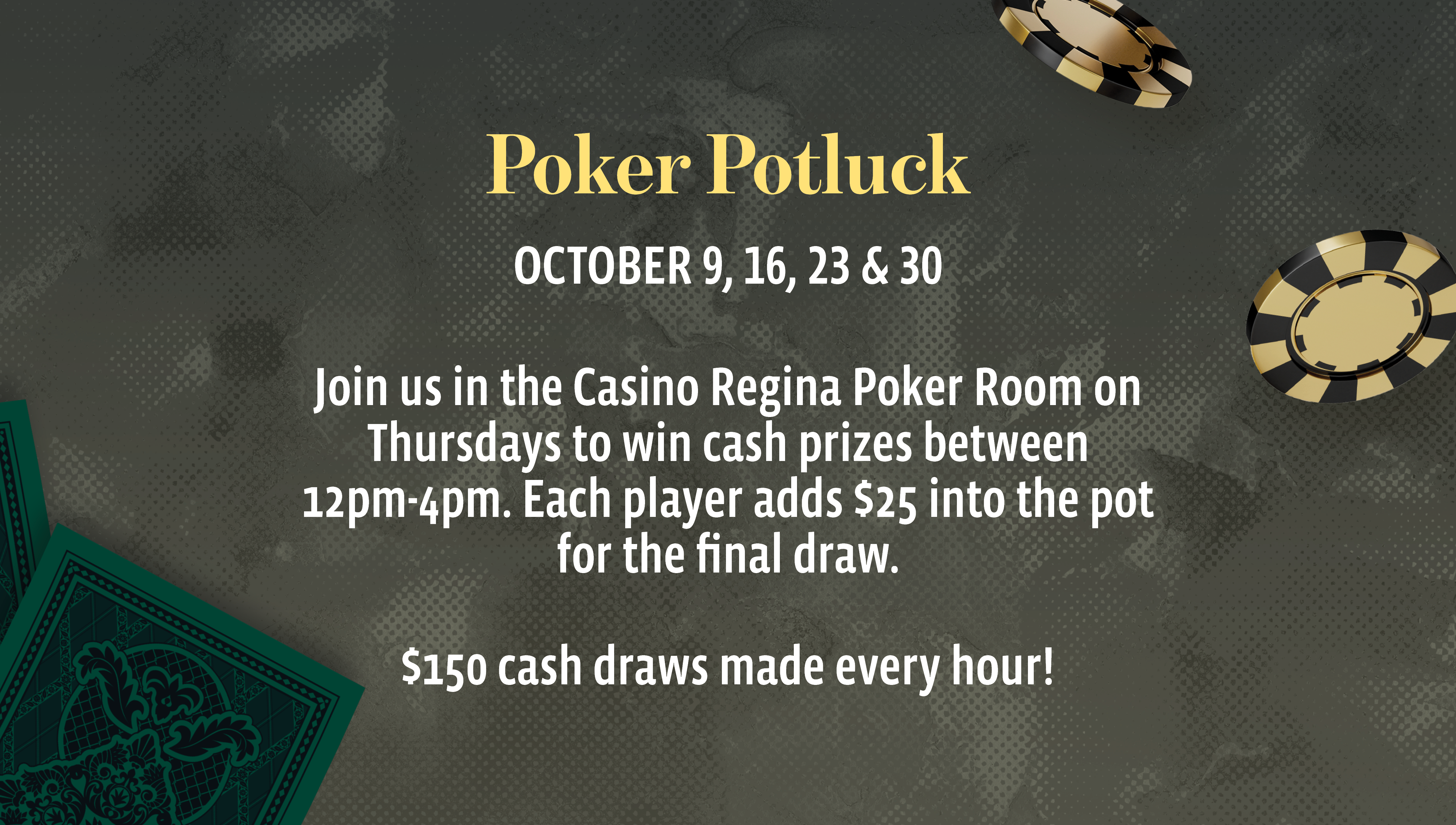 Join us in the Casino Regina Poker Room on Thursdays to win cash prizes between 12pm-4pm.